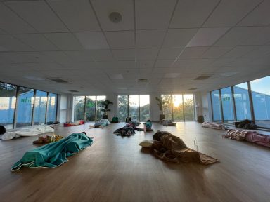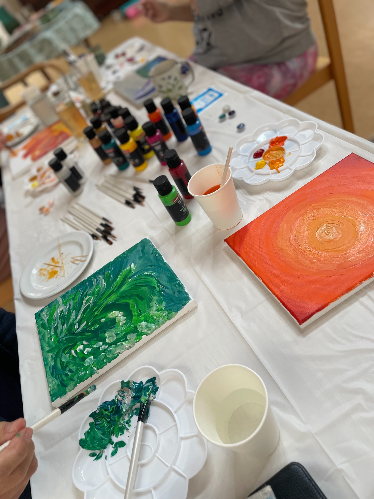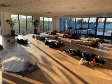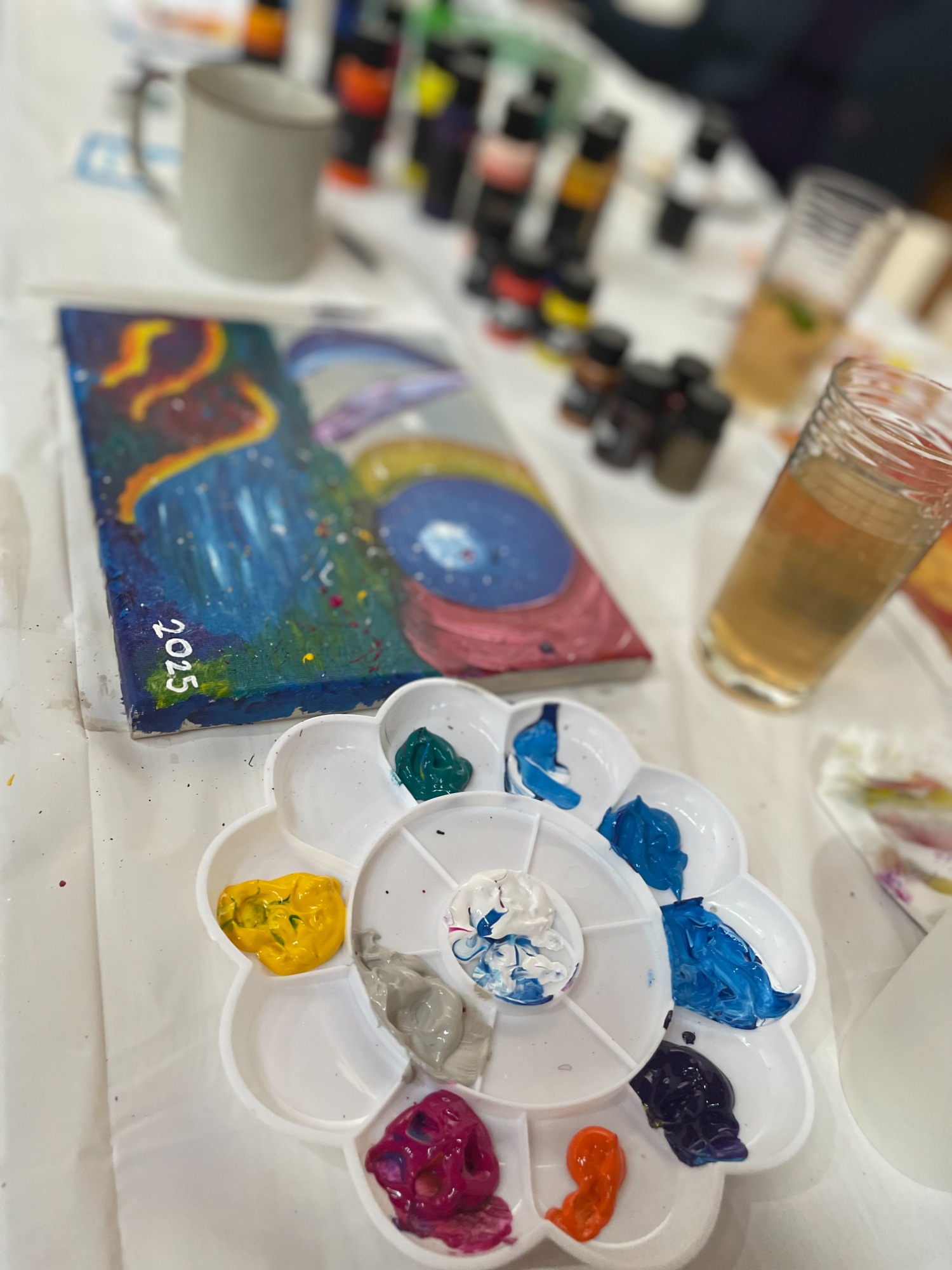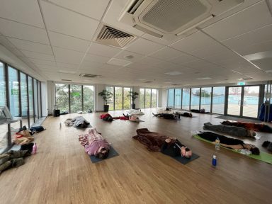 Please bring your own yoga mat. £60.00 (including online booking fee). Canvas, art materials, food and refreshments all included.